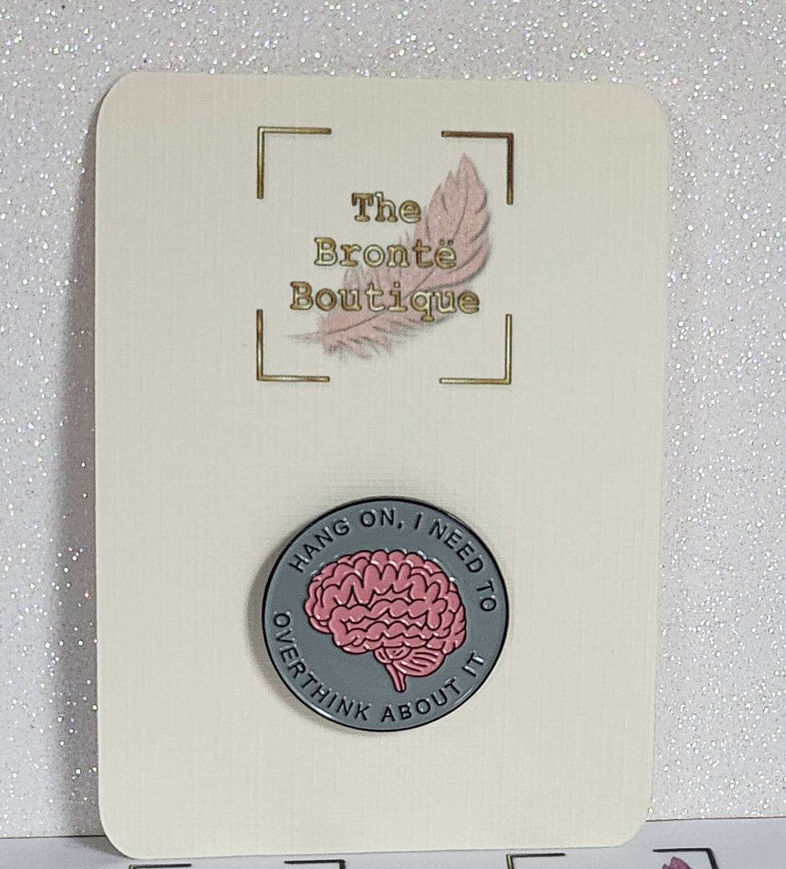Enamel Pin Badge 'Hang On While I Overthink About It' On Linen Effect Gift Card Hang On I Need To Overthink About Affirmation Positivity Pink Friendship