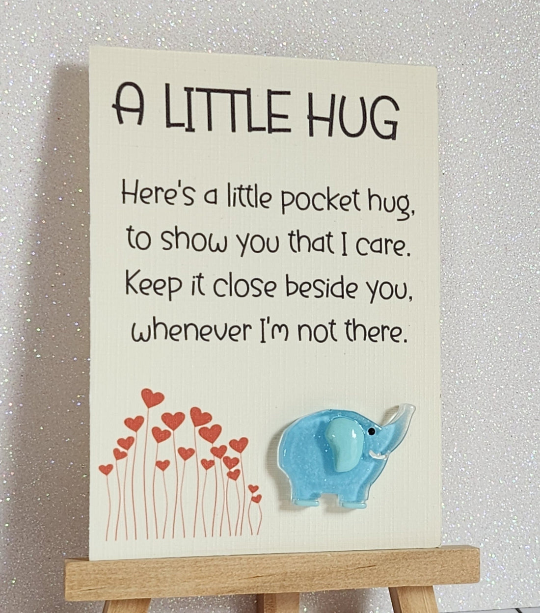 Elephant Pocket Hug 3d Blue Elephant Pocket Hug On Gift Card Gift Card Option Positive Affirmation Friend Son Daughter Back To School