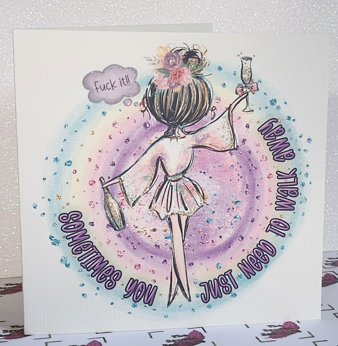Funny Positive Affirmation Handmade Card 'F**k It!' Champagne Girl Humour Sarcasm Need To Walk Away Swarovski Glitter Free Delivery