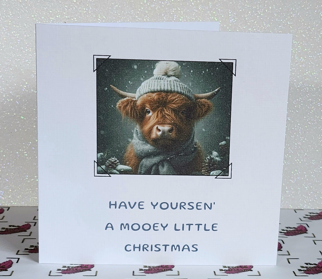 Highland Cow Christmas Card Have Yoursen' A Mooey Little Christmas Handmade Free Delivery