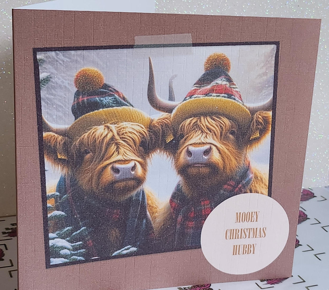 Highland Cow Christmas Card Highland Cow Couple Handmade 'Mooey Christmas Hubby' Husband Highland Coo Free Delivery
