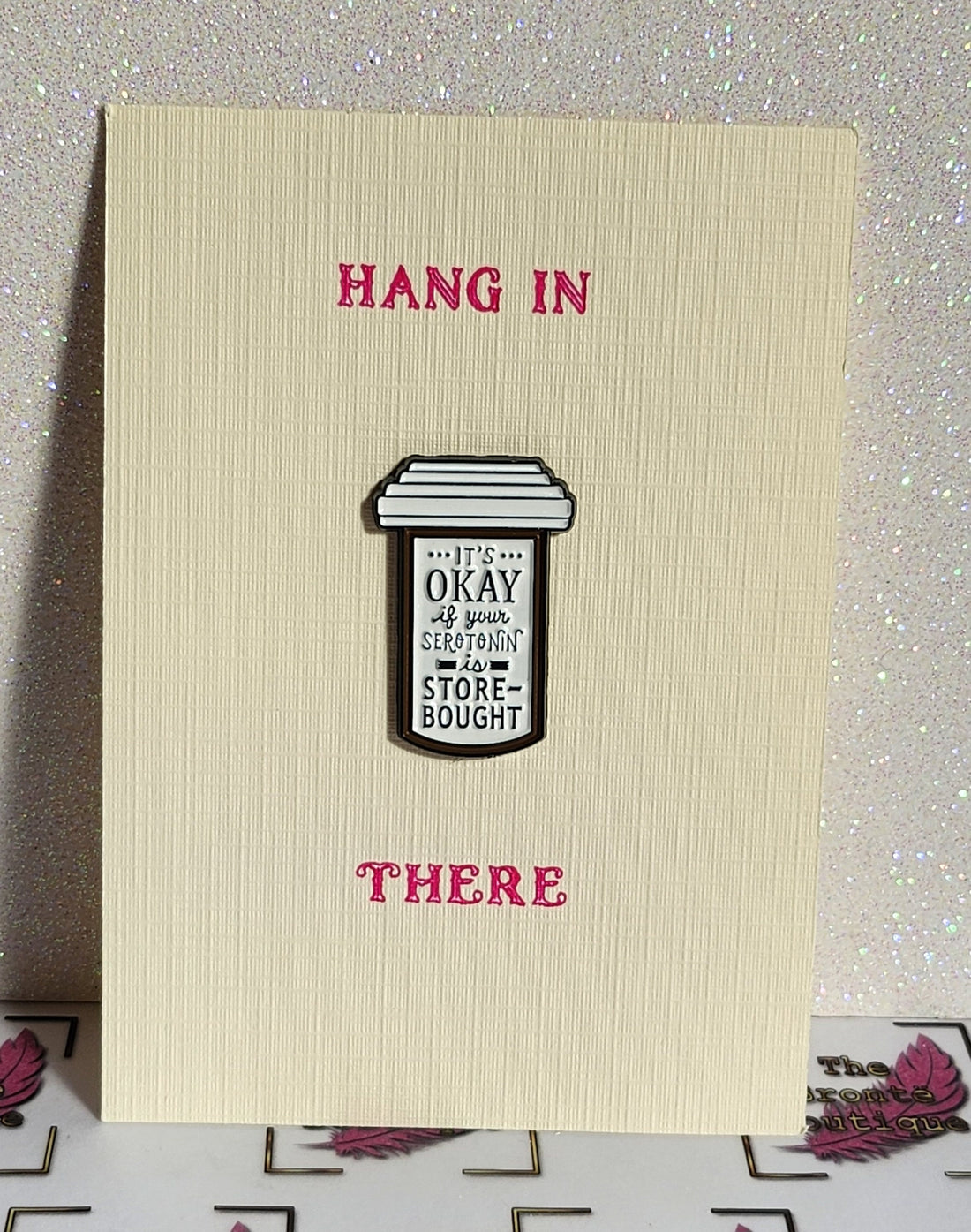 Positive Affirmation Enamel Badge On Gift Card 'It's Ok If Your Serotonin Is Store Bought' Hang In There Mental Health Friendship Self Love