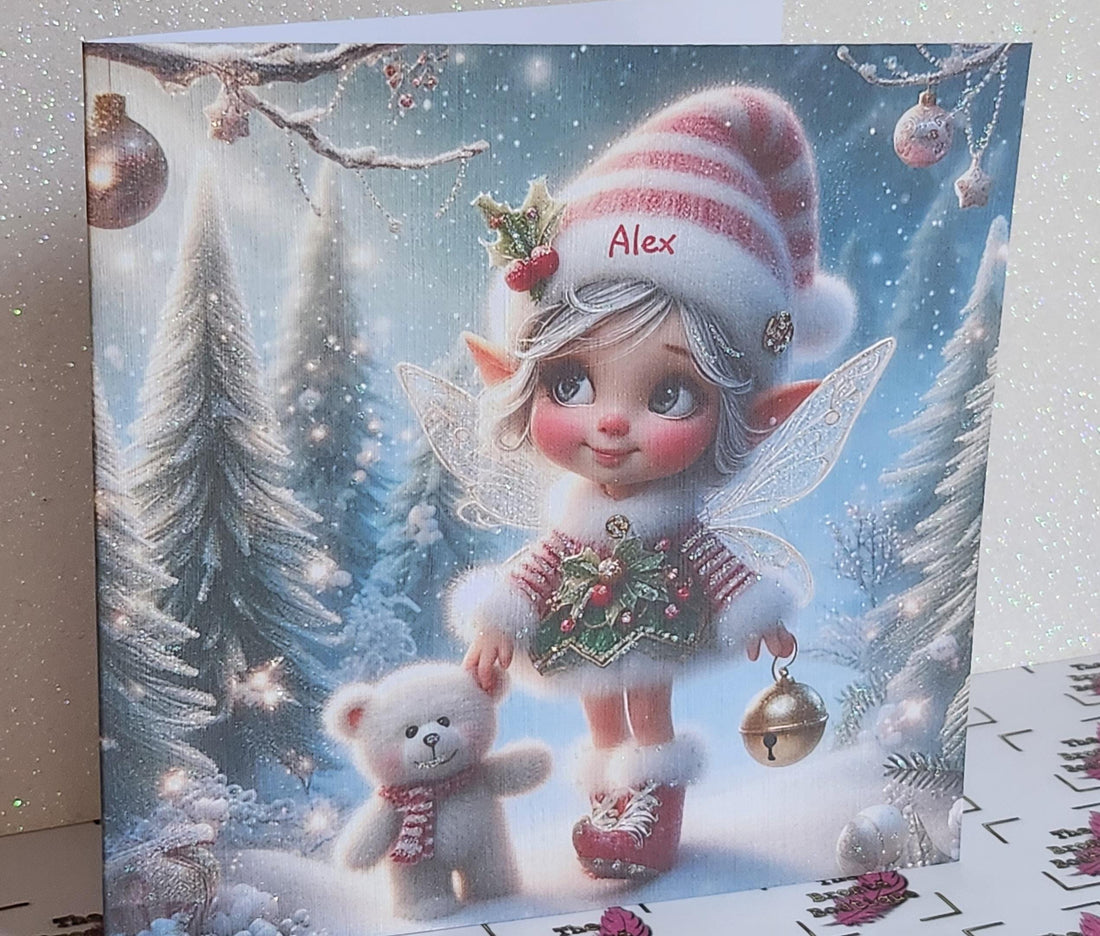 Christmas Fairy Card Handmade Personalised Fairy In Festive Scene Christmas Tree Glitter Choice Of Name Linen Effect Holidays Free Delivery