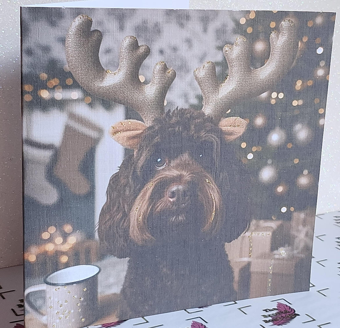 Cockapoo Christmas Card Cockapoo Wearing Gold Reindeer Antlers With Christmas Tree Snow Fur Baby Free Delivery