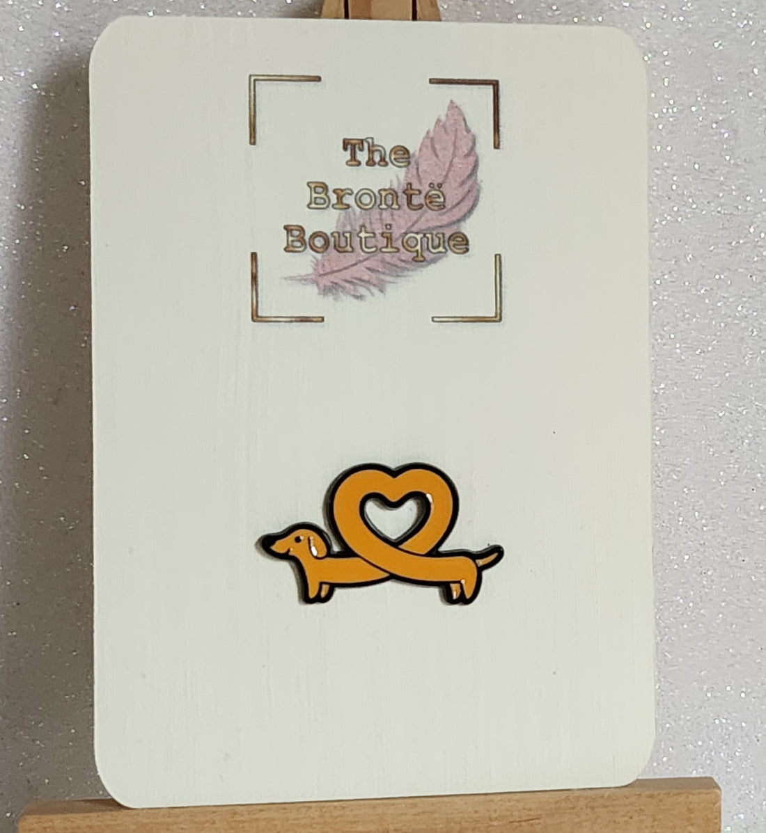 Dachshund Enamel Pin Badge On Gift Card Cute Sausage Dog Lover Fur Baby Loveheart Dachshund Pet Parents Dog Mum Dog Dad