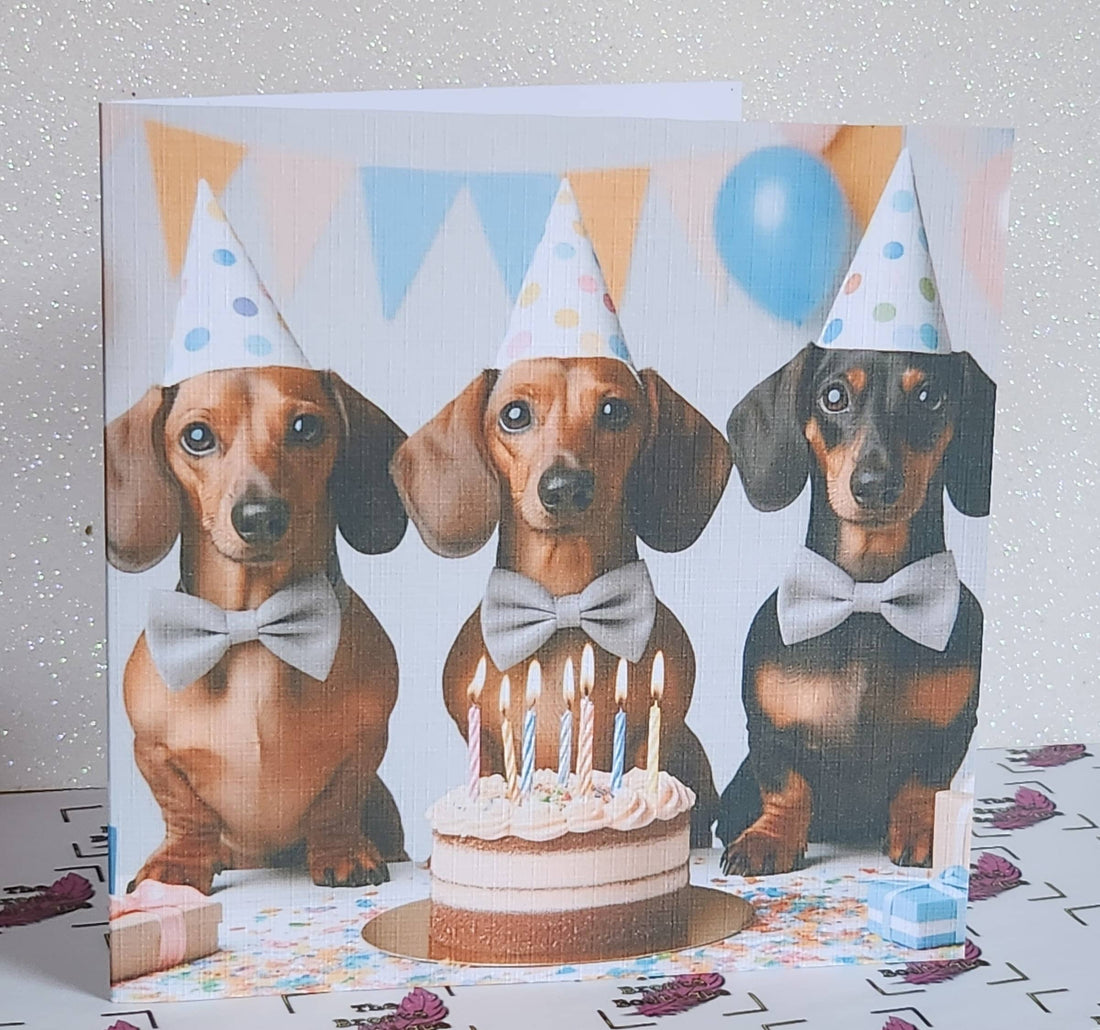 Dachshund Birthday Card Dachshunds Wearing Birthday Hats Happy Birthday Dad Son Sister Aunt Handmade Linen Effect Card Square Free Delivery (Copy)