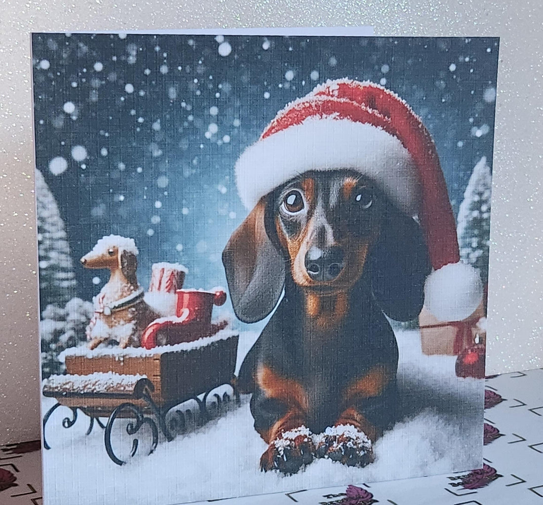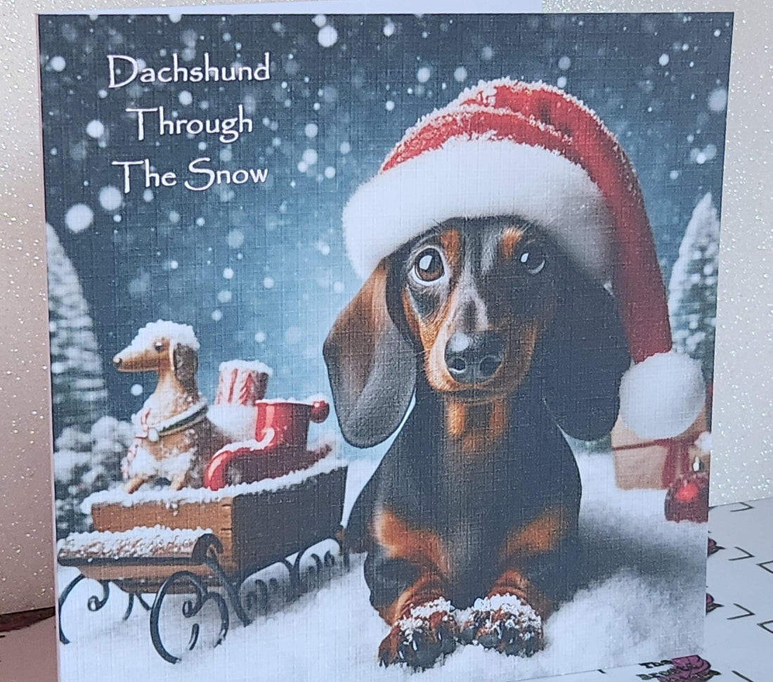 Dachshund Christmas Card Dachshund Through The Snow Dachshund Wearing Santa Hat With Sleigh Christmas Card Festive Scene Free Delivery