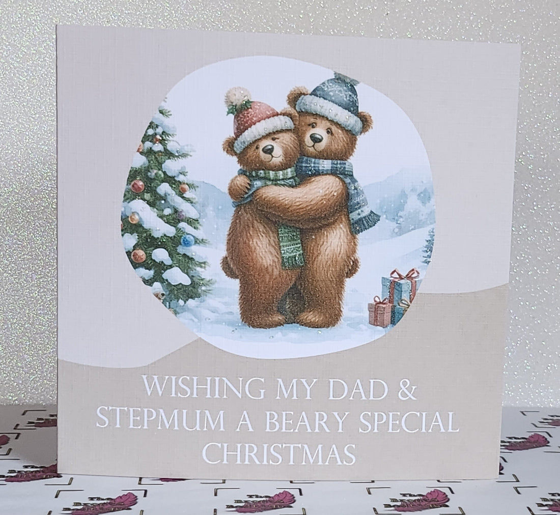 Dad And Stepmum Christmas Handmade Card Wishing My Dad And Stepmum A Beary Special Christmas Teddy Bear Couple Watercolour Free Delivery
