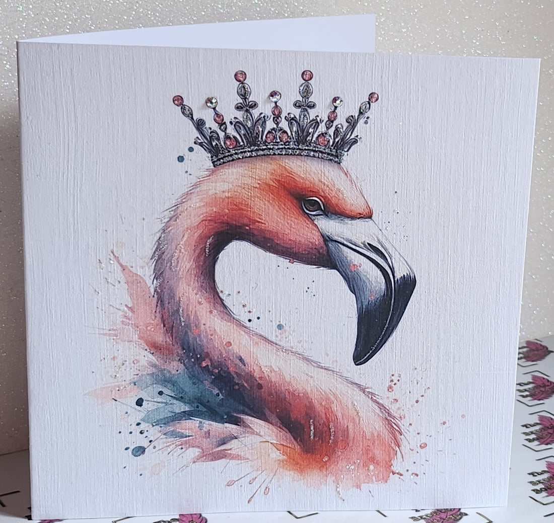 Positive Affirmation Handmade Card Watercolour Flamingo Swarovski Crystal Self Love Mental Health Free Delivery