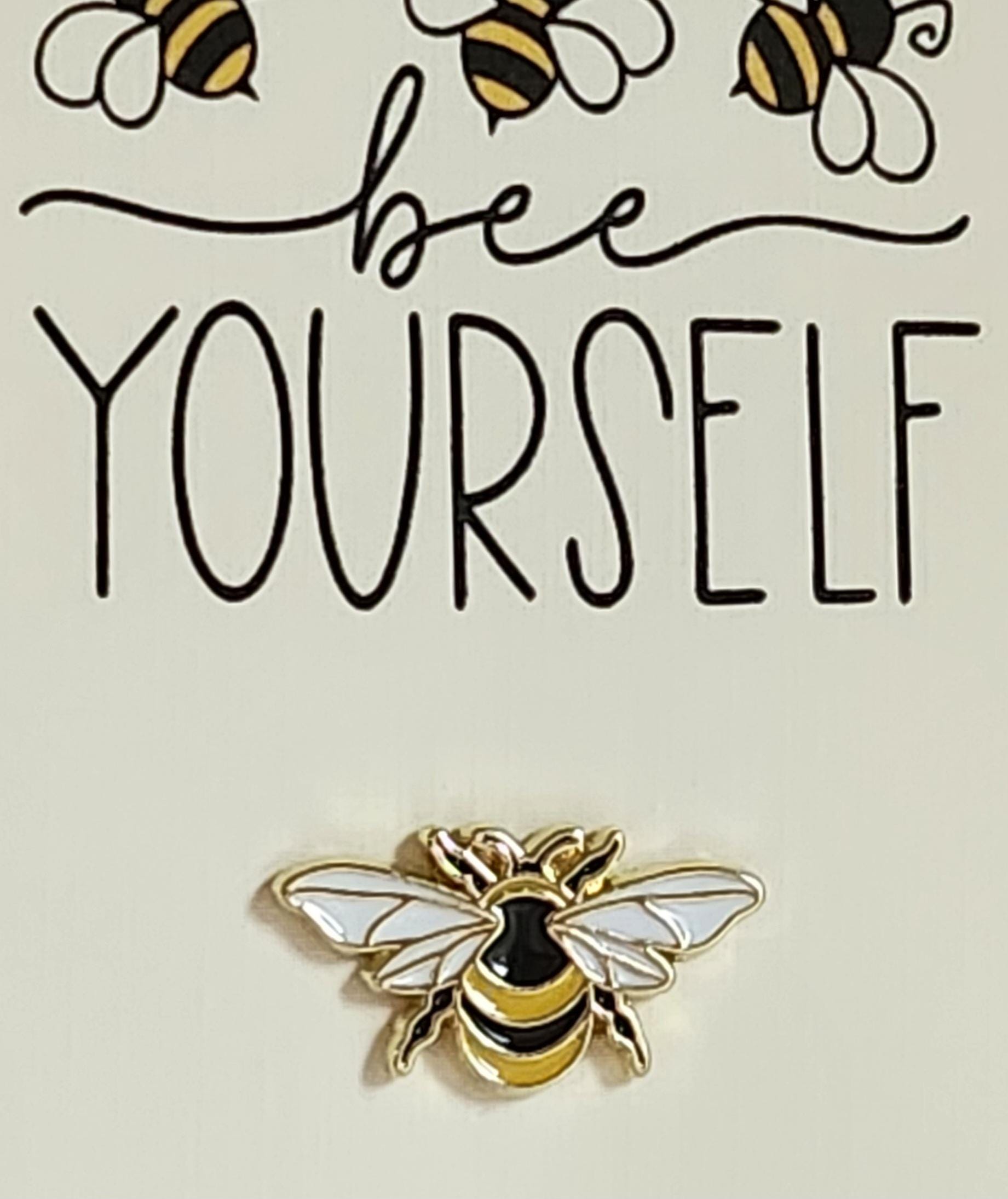 Bee Enamel Pin Badge On Gift Card Yellow And Black Bumble Bee Badge 'Bee Yourself' Friend Self Love Positivity Mental Health Anti Bullying