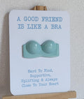 A gorgeous and cheeky pocket hug to give a friend in need a positive boost. This lush pale blue resin bra is set on a white linen effect gift card which has the wording ' A Good Friend Is Like A Bra, Supportive, Uplifting & Always Close To Your Heart ' on it. A lovely and thoughtful gift for someone who needs a bit of encouragement and a virtual hug.