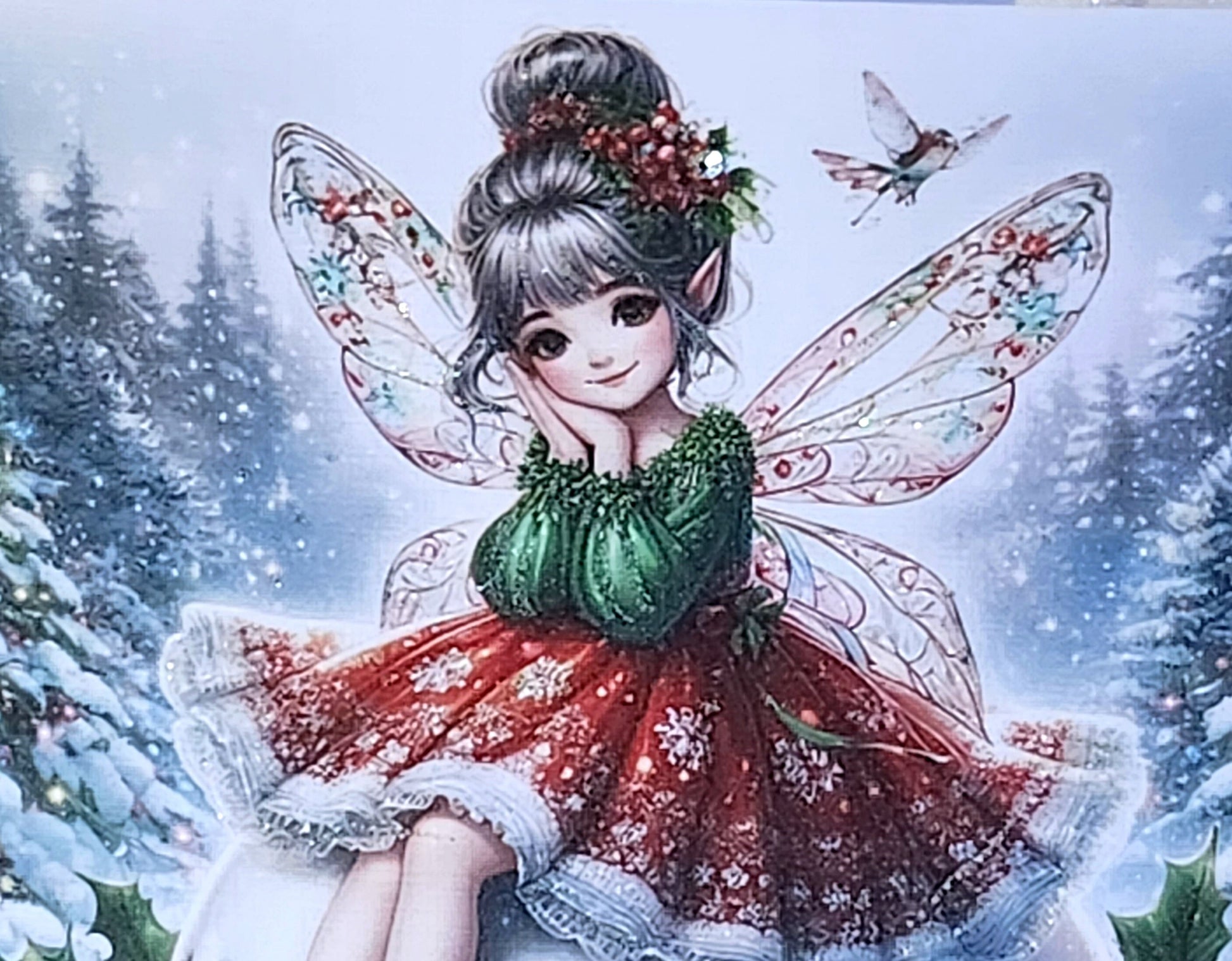 Christmas Fairy Card Handmade Fairy Sat On Christmas Pudding Genuine Swarovski Crystal Glitter Detail Linen Effect Square Card Free Delivery
