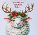Christmas Reindeer Sheep Handmade Card 'All I Want For Christmas Is Ewe' Reindeer Antlers White Linen Effect Square Card Free Delivery