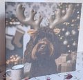A stunning and unique card perfect for sending Christmas wishes to anyone who loves Cockapoos. This white 300gsm linen effect card measures 150 x 150mm and features the cutest Dachshund wearing a pair gold coloured reindeer antlers on it. This lush card is a design exclusive to The Bronte Boutique and is enhanced with a sprinkling of glitter.