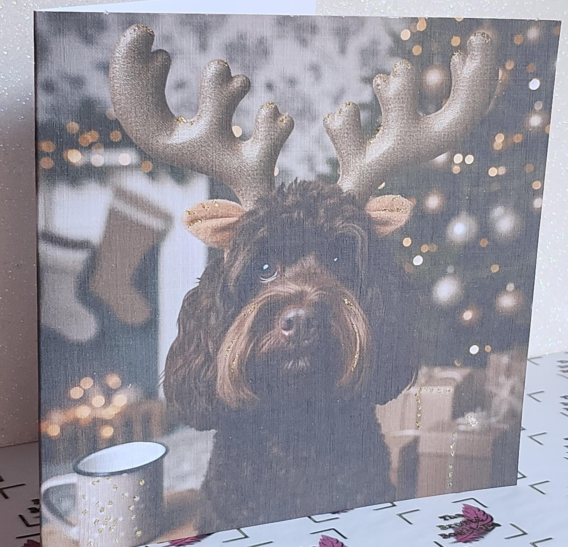 Cockapoo Christmas Card Cockapoo Wearing Gold Reindeer Antlers With Christmas Tree Snow Fur Baby Festive Scene Christmas Gifts Free Delivery