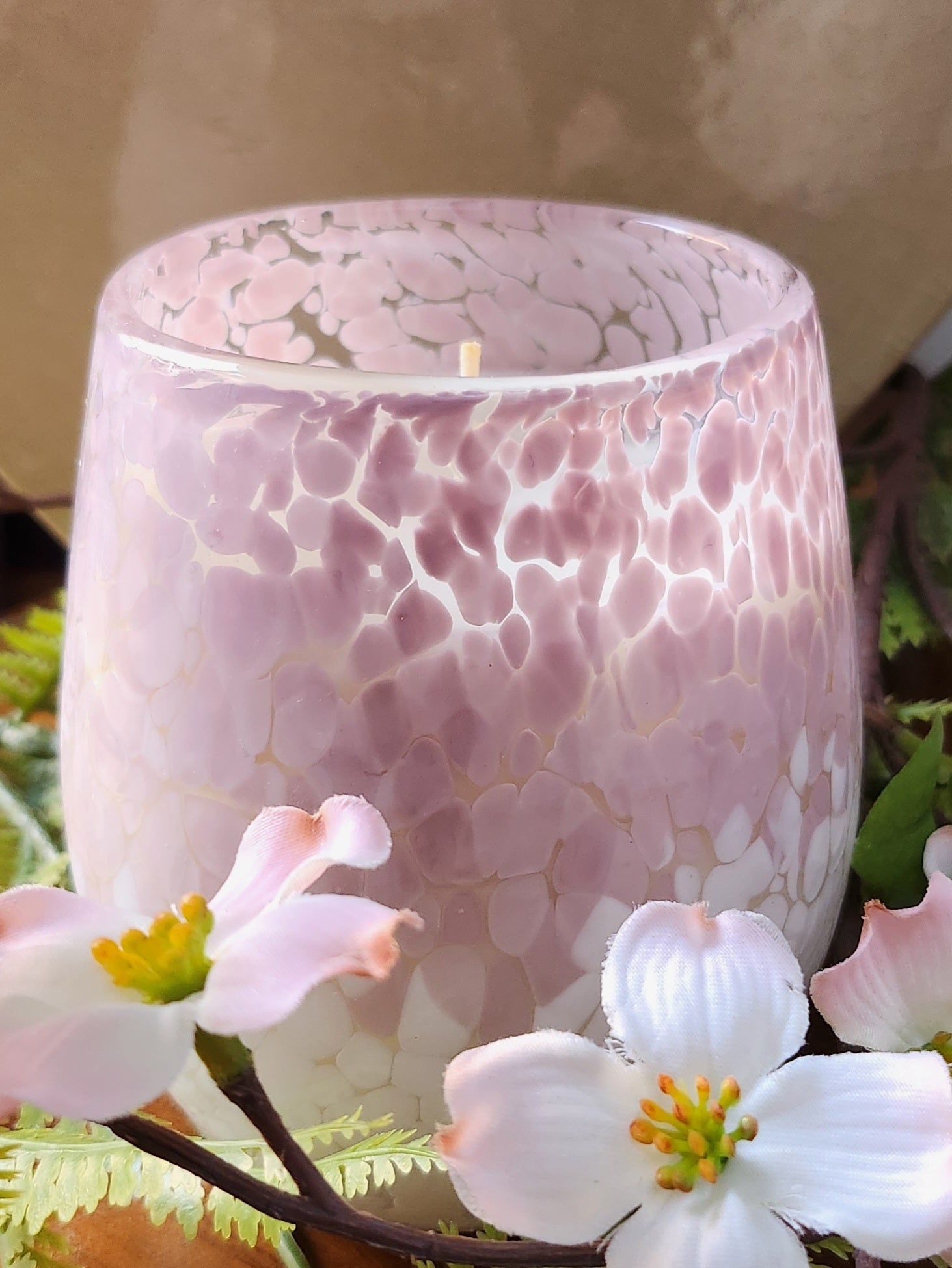 Cocosoy Luxury Scented Candle Handpoured In Stunning Pink Stemless Wineglass Jar Gift Boxed Pink Snowdrop Fragrance