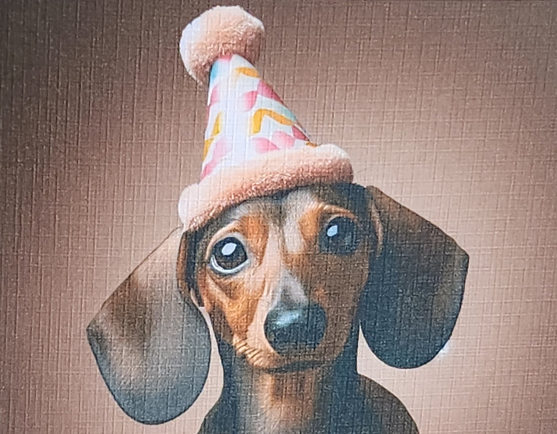 Dachshund Birthday Card Dachshund Wearing Birthday Hat Happy Birthday Dad Son Sister Aunt Handmade Linen Effect Card Square Free Delivery