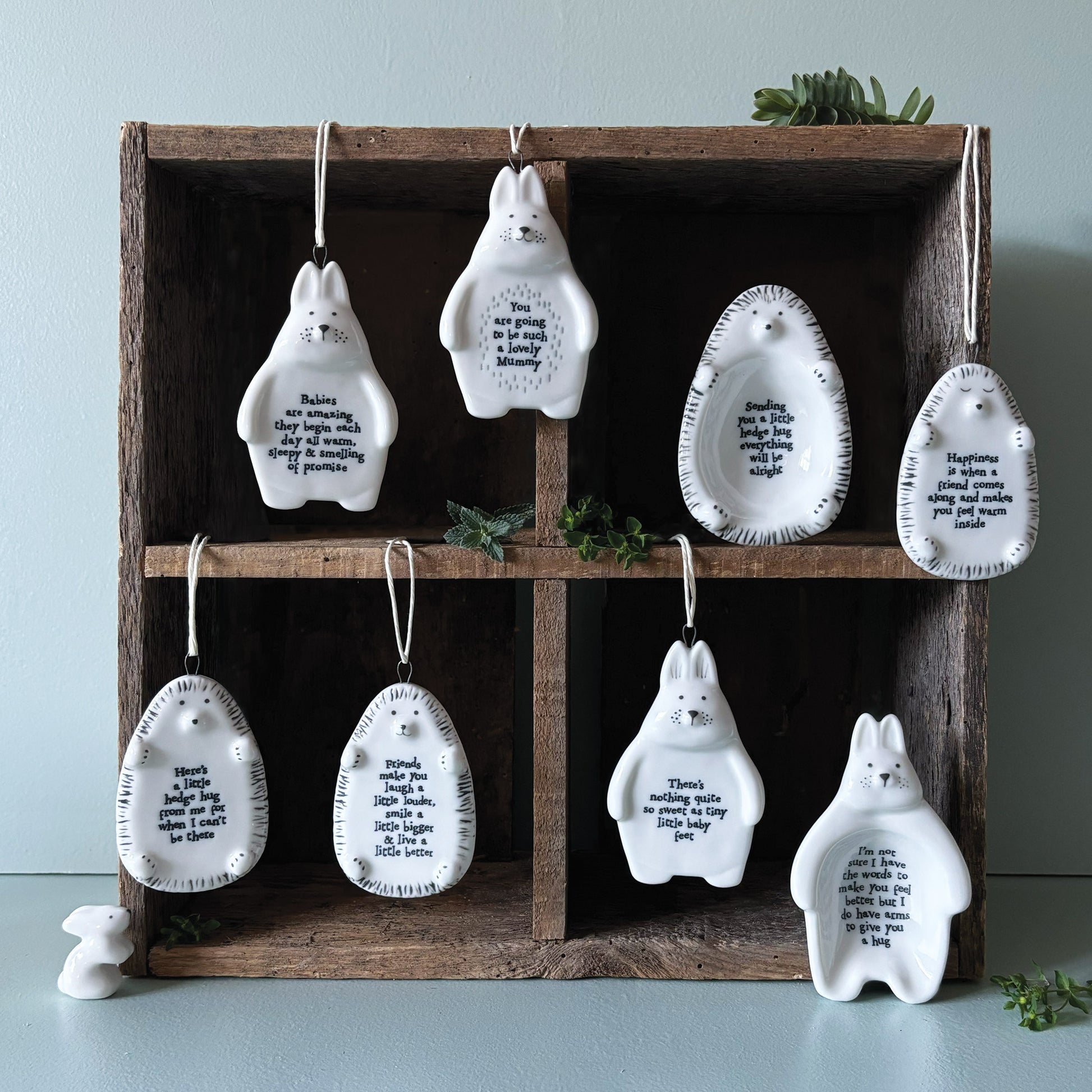 East Of India New Baby Porcelain Hanging Ornament Bunny Rabbit.