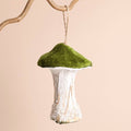 A playful green mushroom holiday decoration. Features sweet woodland details for a rustic look. Lightweight design with a loop for easy hanging.