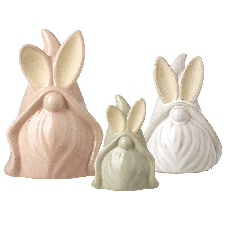 How adorable are these??? This gorgeous trio of Bunny Rabbit Gonks are made from porcelain and come in 3 different sizes and colours - natural cream 15cm tall, blush pink 12cm tall and sage green 10cm tall.