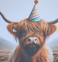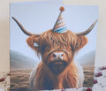 Highland Cow Birthday Card Highland Coo With Birthday Hat Happy Birthday Handmade Linen Effect Card Square Free Delivery Highland Cow Friend (Copy)