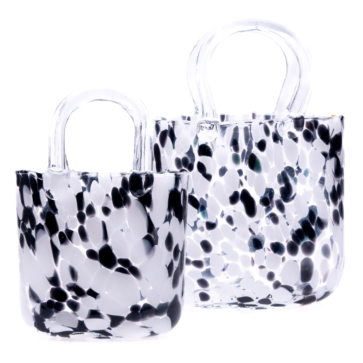 Lase Vase Glass Handbag Shaped Dalmatian Print