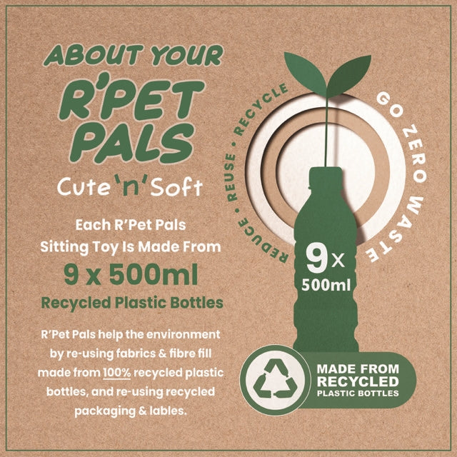 Meet Hughie! Hughie is sooo soft and cuddly that I simply did not believe he was made from 9 re-cycled plastic bottles!! Super cuddly and environmentally friendly too! Hughie measures approx 15cm x 15cm x 20cm and would be the perfect best friend for any Highland Coo lover.