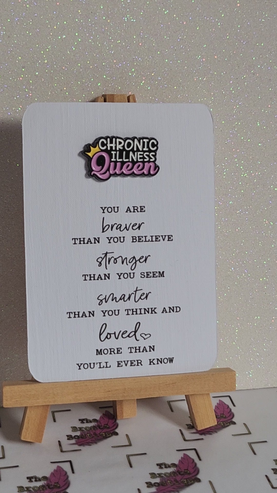 Positive Enamel Badge 'Chronic Illness Queen' On Gift Card 'Braver Than You Believe' Mental Health Self Love Suicide Prevention Fibro