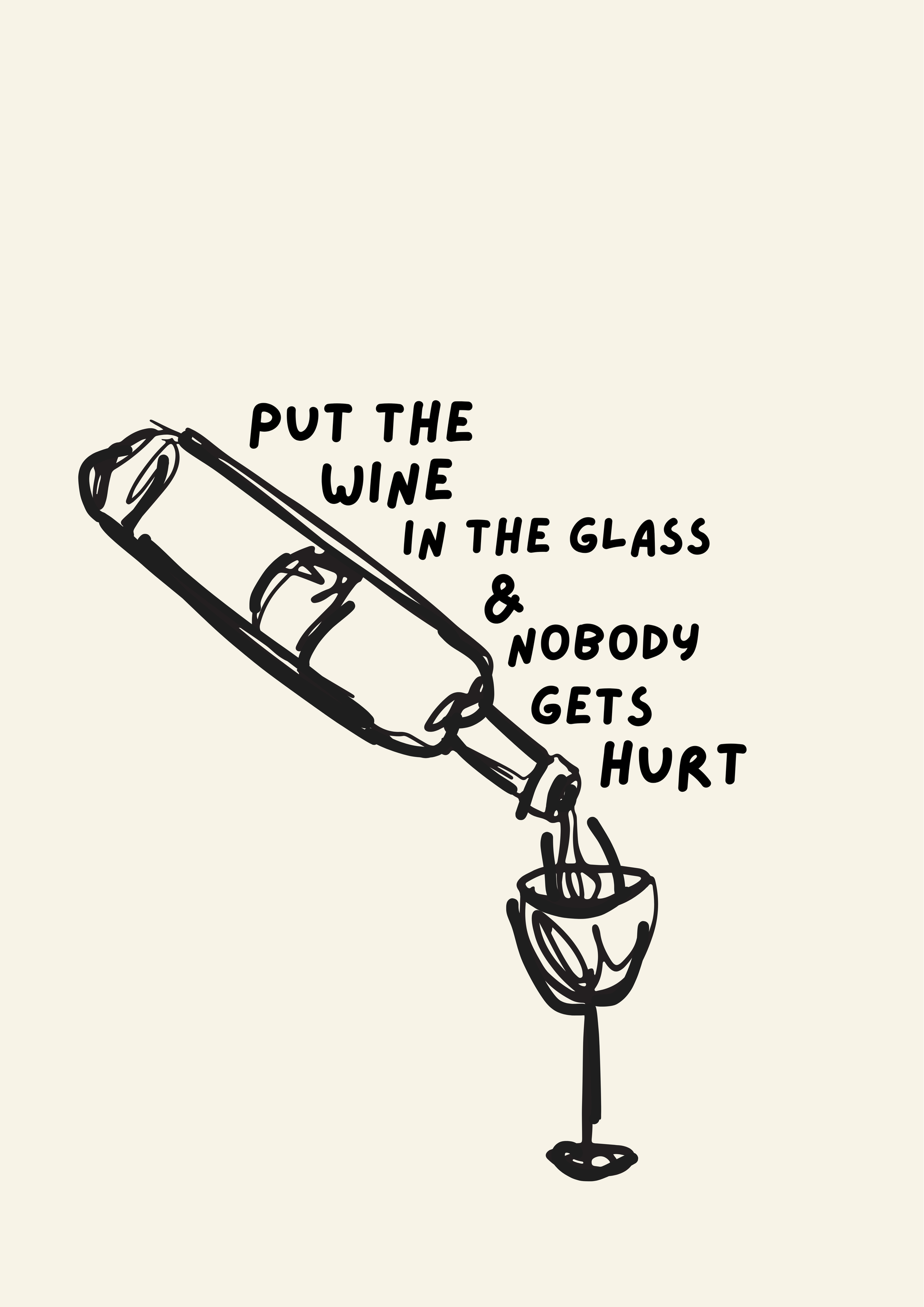 Fun Wall Art 'Put The Wine In The Glass & Nobody Gets Hurt' Print: 5x7 Blue Iris Designs