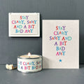 This fabulous scented candle is perfect for that wine lover we all know and love with the wonky wording 'Stay Classy, Sassy & A Bit Bad Assy'. From renowned gift retailers East Of India this quirky gift idea is scented with their lush Sweet Orange fragrance and comes in a silver coloured tin complete with lid.