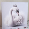 Swan Birthday Card Elegant Swan With Crown Swarovski Crystal Detail Glitter Mother's Day Handmade Linen Effect Card Square Free Delivery