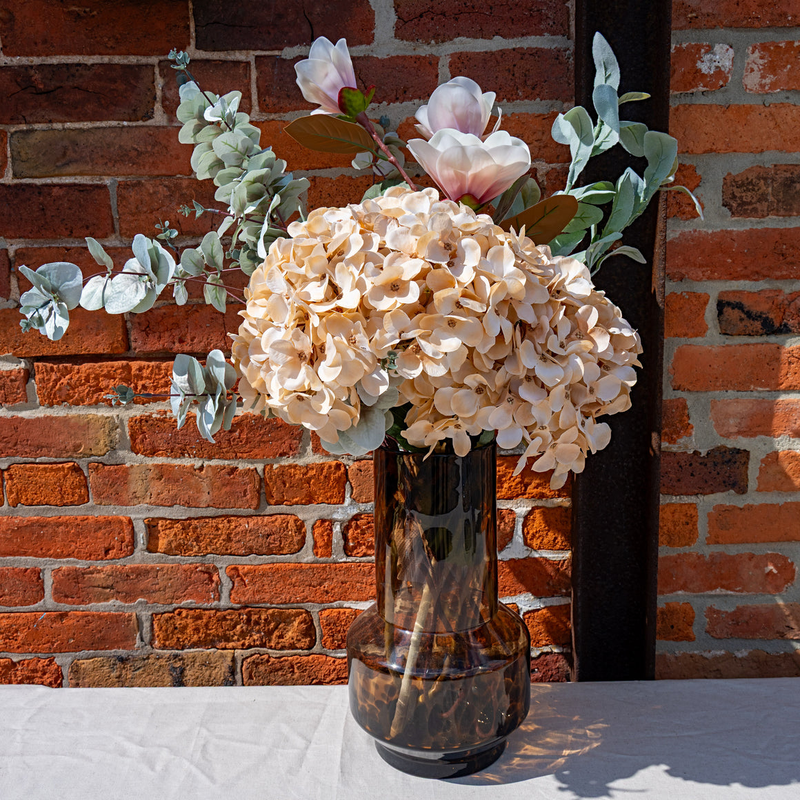 The Tall Leopard Vase is a bold statement piece that brings wild beauty to any space. Crafted from high-quality glass, it features a striking leopard print, perfect for showcasing flowers or as a decorative accent. With its sleek silhouette and glossy finish, this vase complements contemporary and classic interiors, making it a stunning addition to your home decor. Please note the flowers are for illustration purposes only and not included.